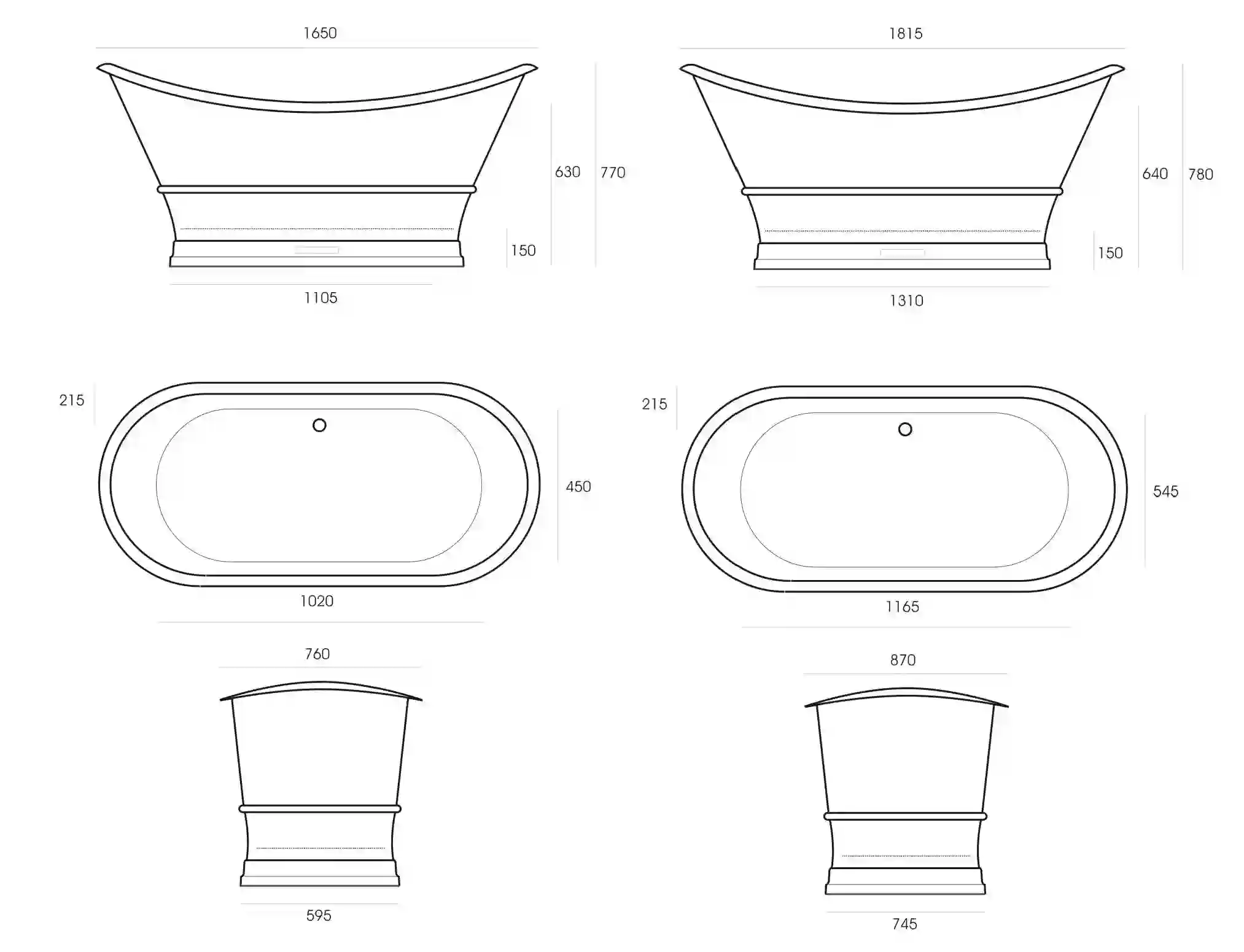 Available in one length – 1815mm. Apollo Classic is only available with a full roll (no tap holes in the rim of the bath), so you will need either wall-mounted or freestanding (standpipe) taps to complete your installation.