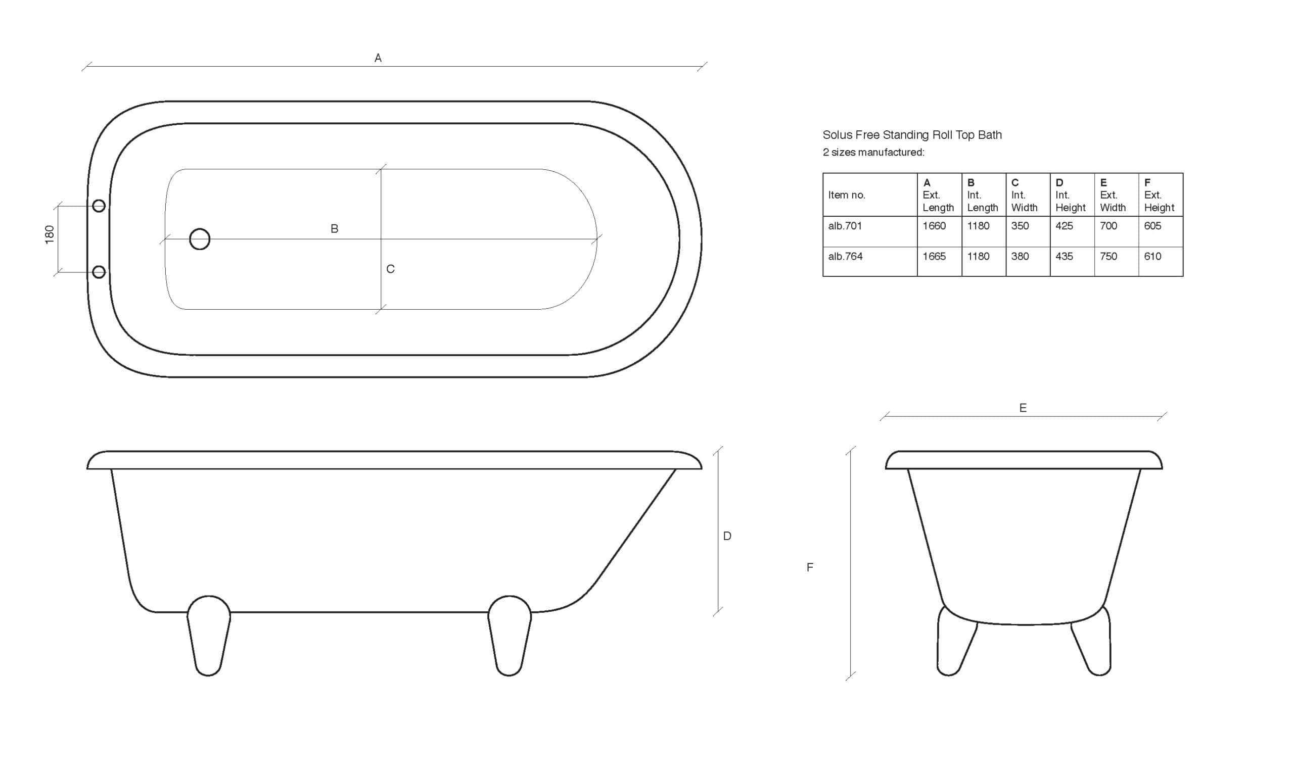 Solus is only available with a full roll (no tap holes in the rim), so you will need either wall-mounted or freestanding (standpipe) taps to complete your installation.